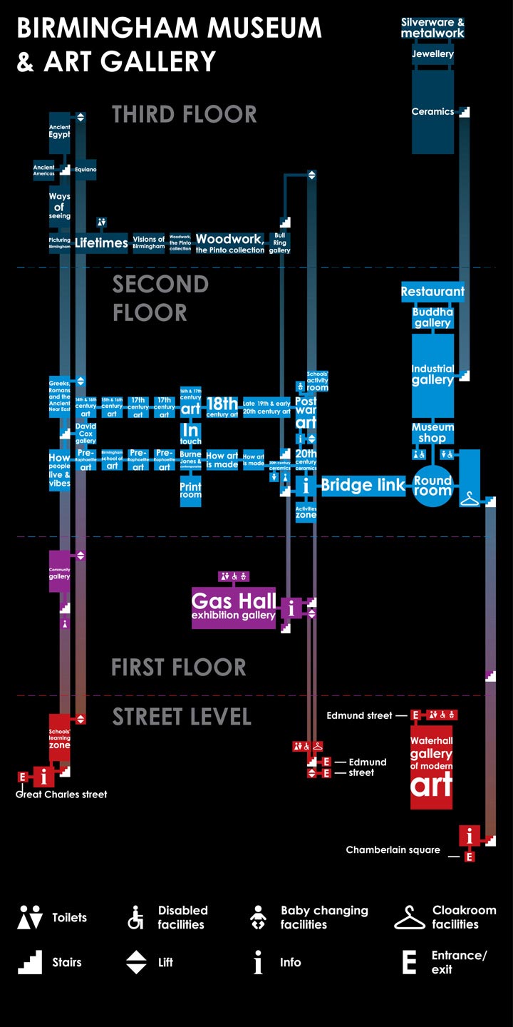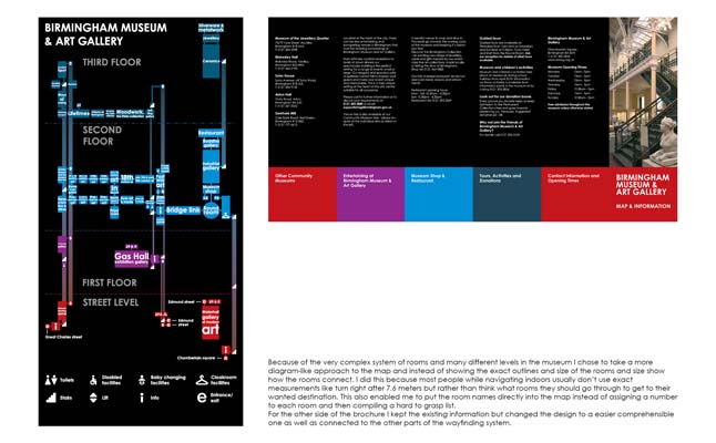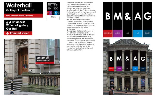 This was a university assignment to come up with a concept for a new wayfinding (or, more accurately, wayshowing) concept for Birmingham Museum and Art Gallery. It started my interest in all kinds of visual information systems, be it in the environment or online.