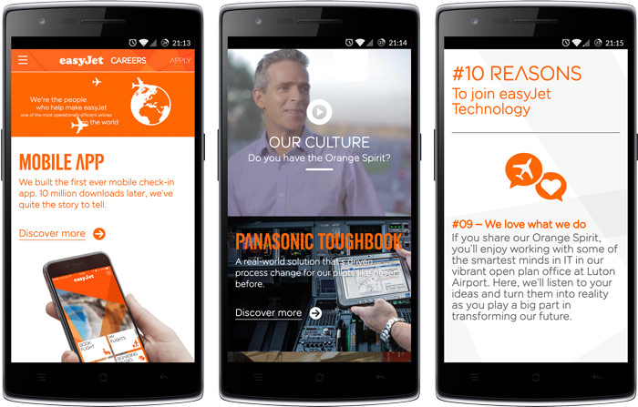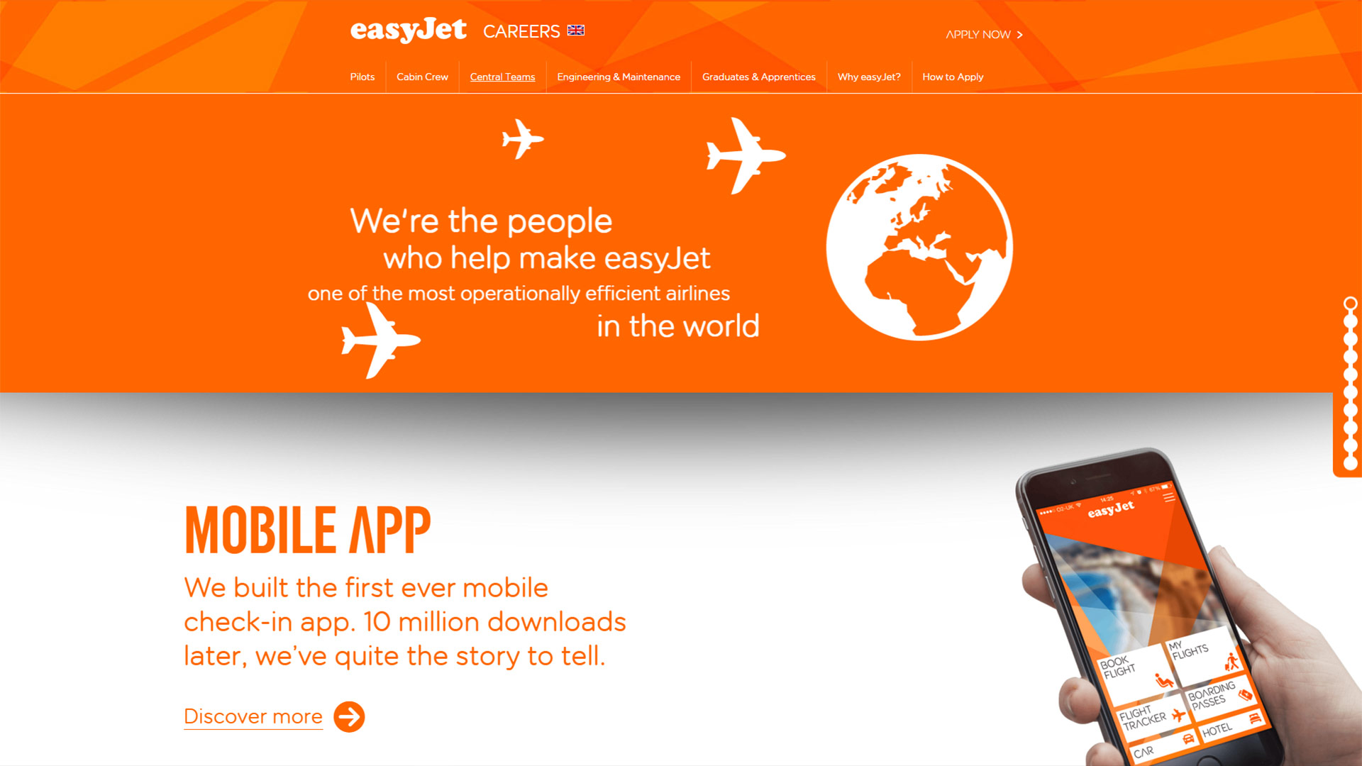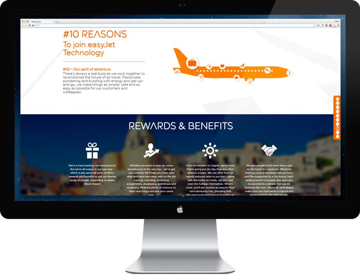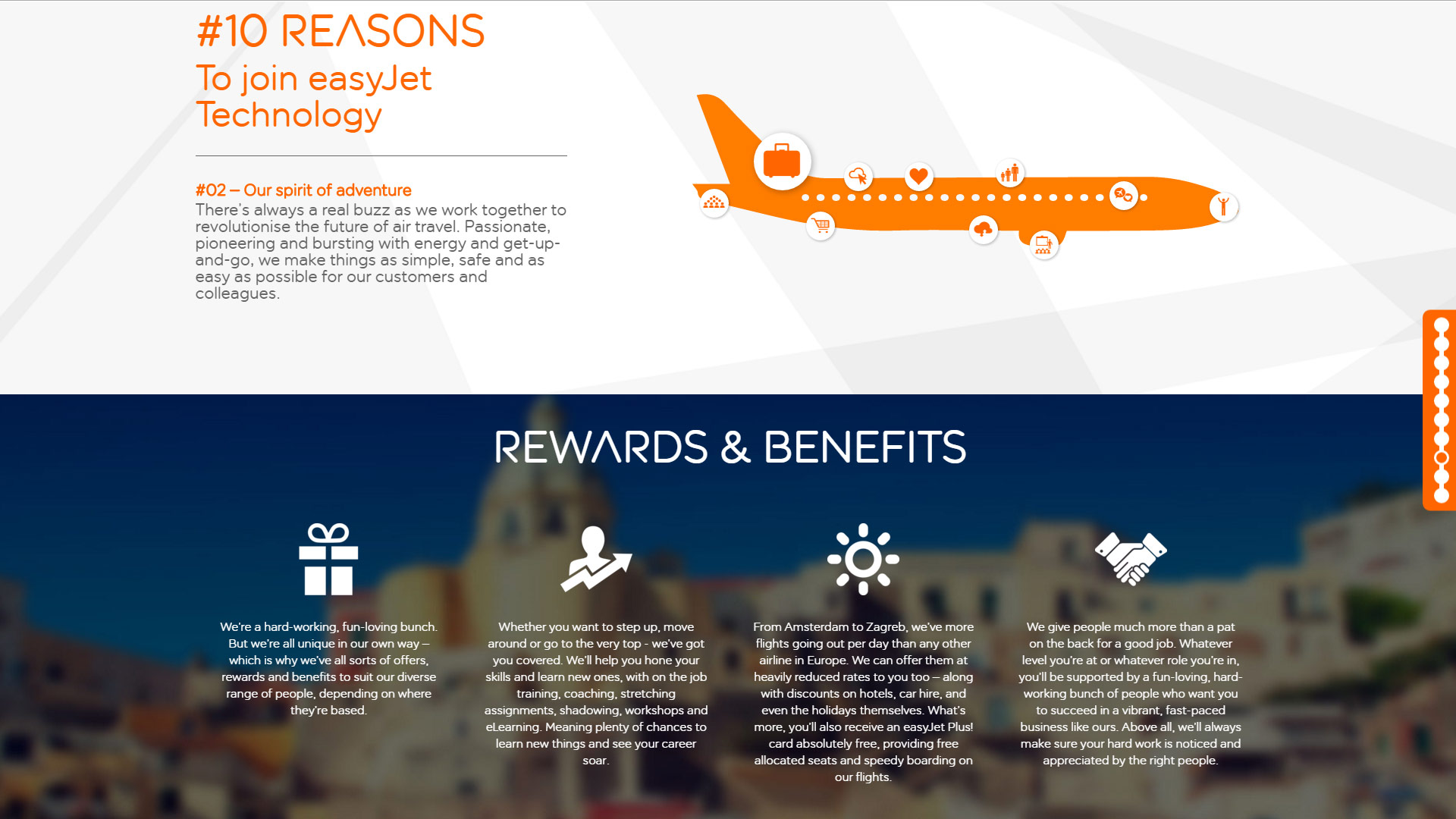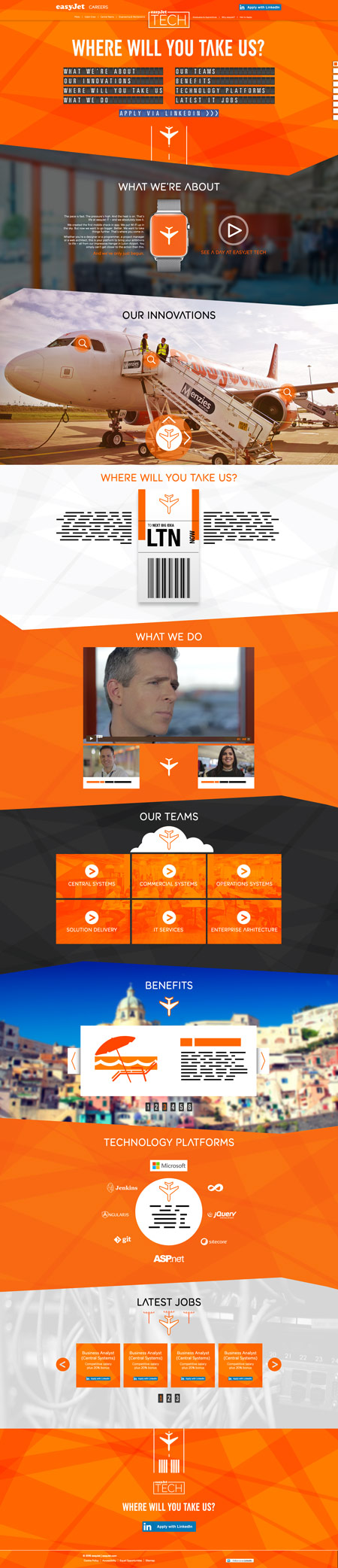 Just like many other employers whose primary focus is not IT related, easyJet is not perceived as a good destination for technology careers, so easyJet wanted something more unique for their Technology roles page.